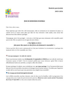 UNE EGLISE À VIVRE JOIE POUR DES SOEURS ET DES FRÈRES DE DEMEURER ENSEMBLE !