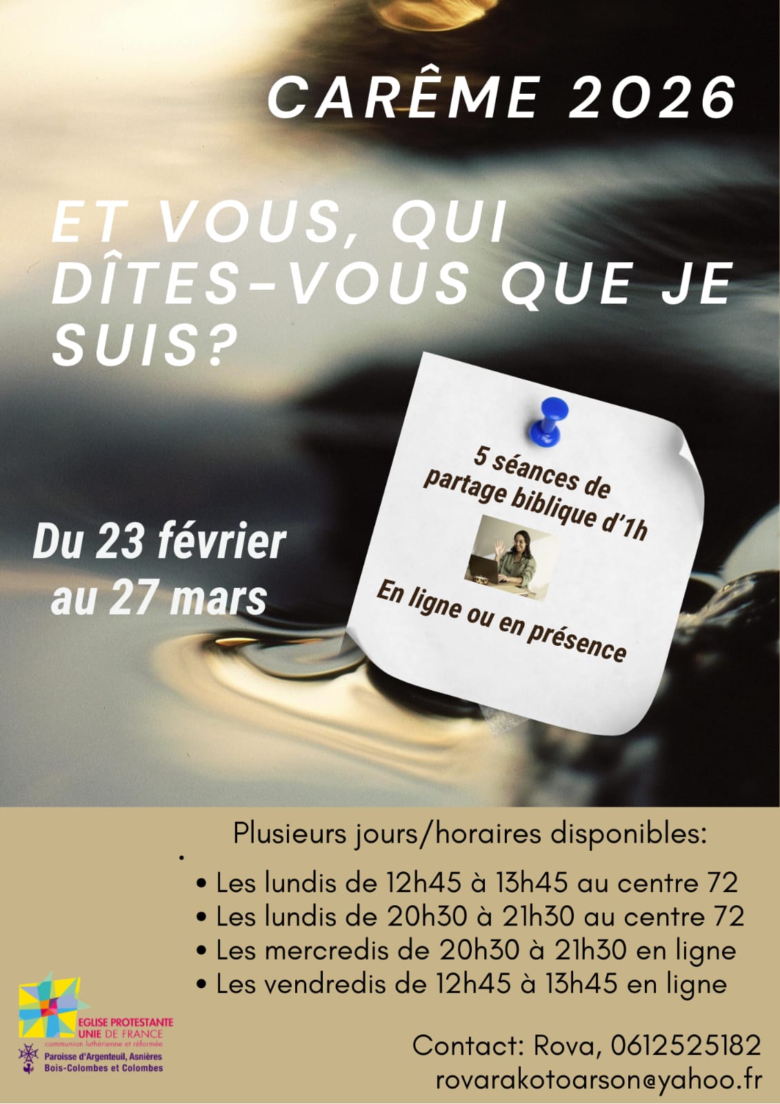 5 séances de partage biblique d'une heure au Centre 72 ou en ligne pour le carême 2026