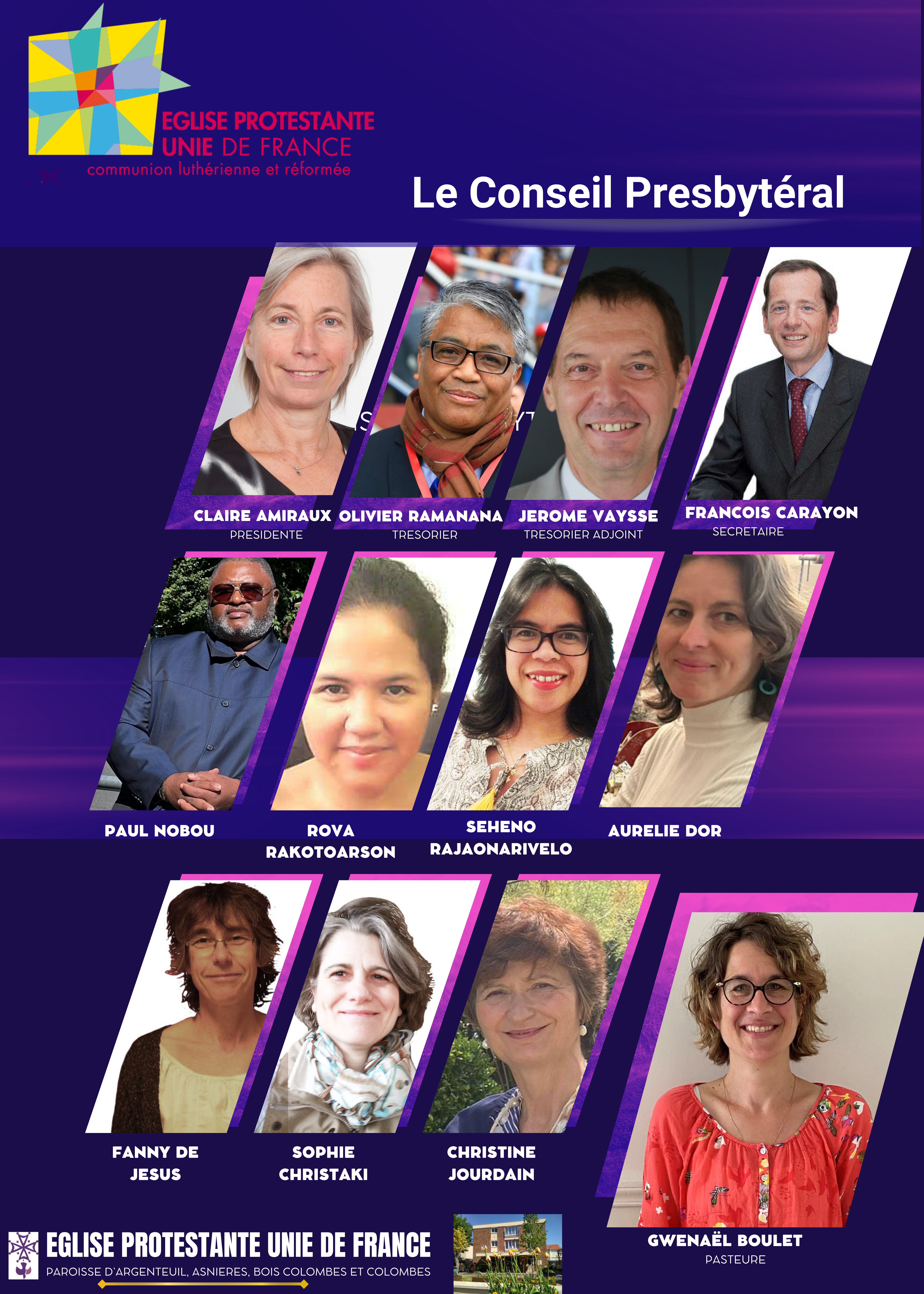 Le montage photographique ci-contre présente les membres du Conseil Presbytéral
